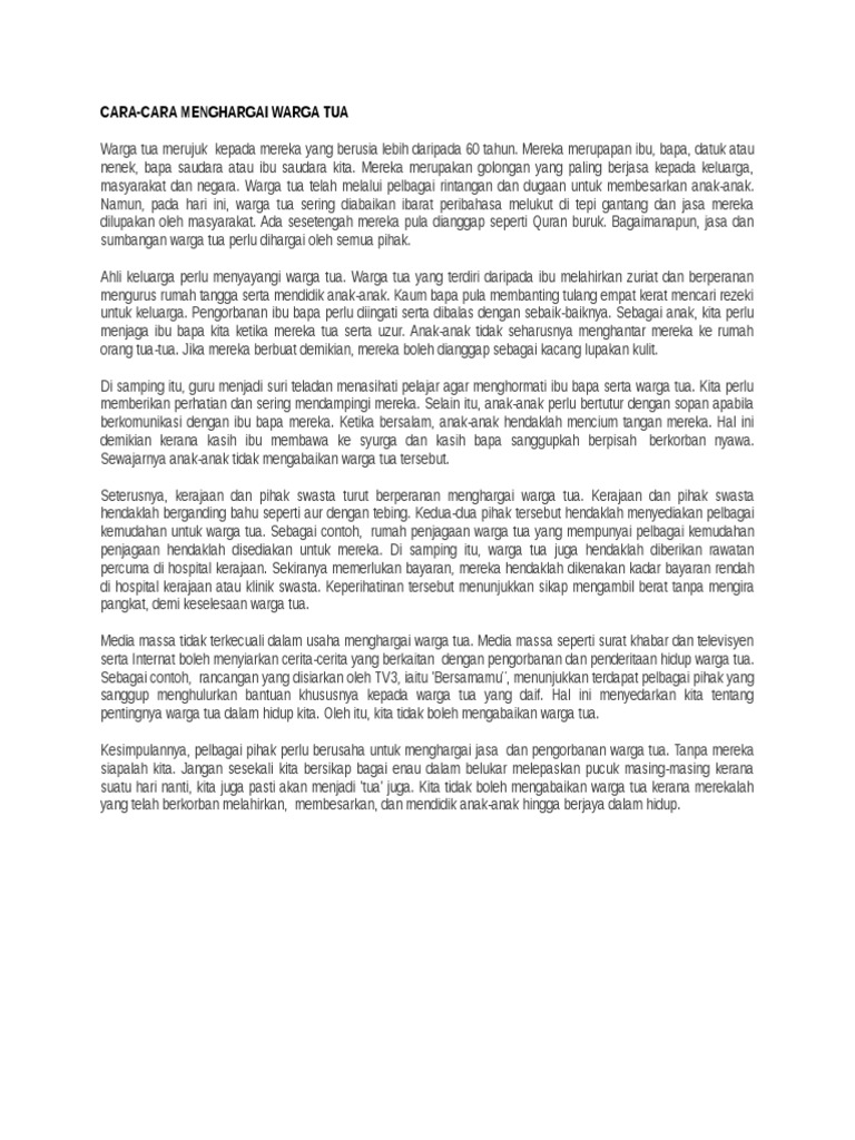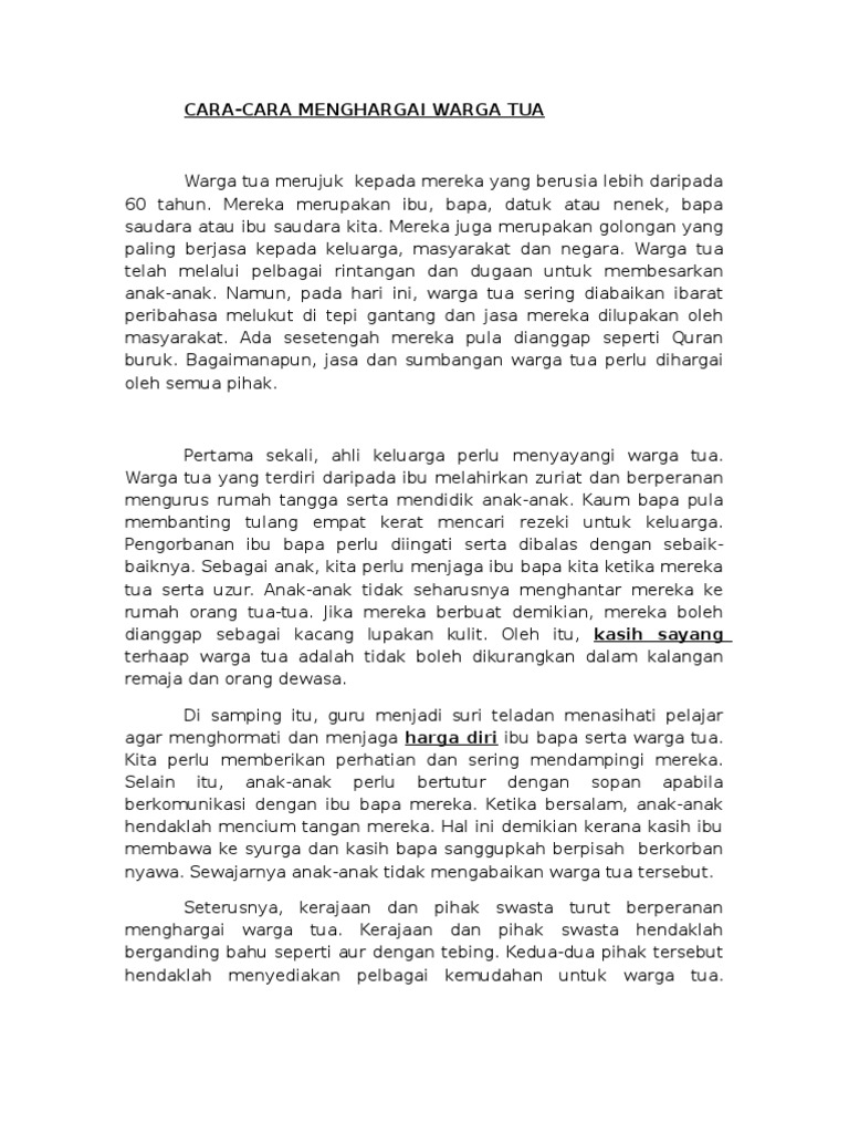 Related : Cara Cara Menghargai Warga Tua / Mereka merupakan golongan yang paling berjasa kepada keluarga, masyarakat dan negara..