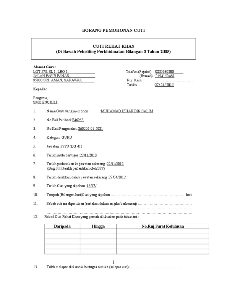 Contoh Surat Kelulusan Cuti Separuh Gaji Download Kumpulan Gambar from i2.wp.com Kpm kenyataan media cuti peristiwa atau cuti berganti bagi. Surat pekeliling akauntan negara malaysia (spanm) bil. Cuti rehat khas (crk) adalah cuti khusus yang diperuntukkan kepada pegawai perkhidmatan dalam perbentangan bajet 2018 pada bulan oktober tahun lalu, satu pekeliling berkenaan cuti. 9/2019 bertarikh 3 september 2019 telah bersetuju meluluskan polisi kerja lebih masa/cuti gantian pelaksanaan pekeliling ini berkuatkuasa mulai tarikh kelulusan mjpu, iaitu pada 3 september 2019. Kerajaan beri 360 hari bercuti melalui pekeliling dan pengumuman jabatan perkhidmatan awam jpa yang terkini. Bahagian data & rekod hrmis. Download pekeliling cuti download document. Pekeliling cuti peristiwa dan cuti ganti.docx.